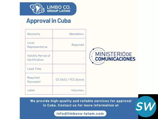 Type Approval in Latin America We are Limbo Corporation Group LATAM, we specialize in the processing of homologation certificates for Wireless and Radio Frequency equipment, telecommunications equipment, and medical devices in Latin America and the Caribbean. We have a team of highly qualified professionals with experi...