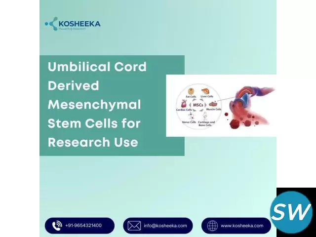 Umbilical Cord Derived Mesenchymal Stem Cells are widely studied for their regenerative potential and immunomodulatory properties in advanced biomedical research. Umbilical cord derived mesenchymal stromal cells are commonly used in tissue engineering, inflammation studies, and cell-based research models. Kosheeka manufactures high-quality, ethically sourced MSC products under controlled laboratory conditions, ensuring consistency and reliability for research and development applications across academic and biotech laboratories.