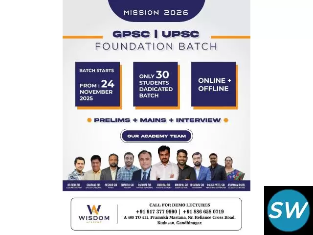Wisdom Academy stands out as the premier coaching institute for government exam preparation in Gandhinagar