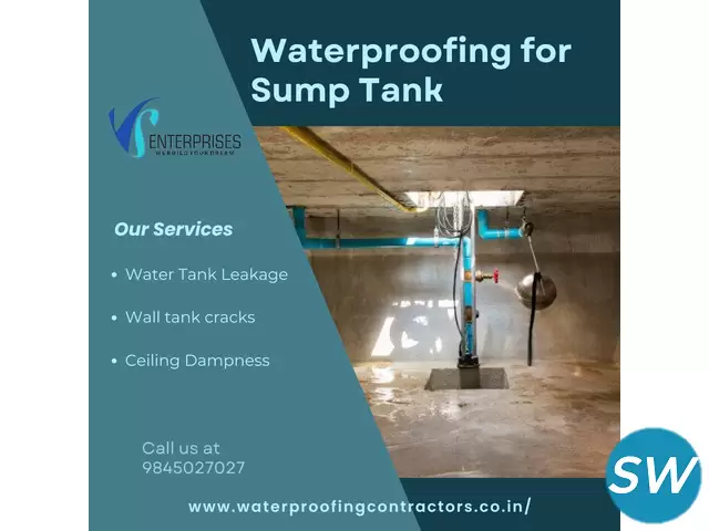 VS Waterproofing Contractors specialize in waterproofing services for sump tanks in Bangalore, ensuring leak proof and durable solutions. Our expertise covers water tank waterproofing to protect against water seepage and damage. Whether it's fixing sump tank water leakage or providing solutions for underground water tank waterproofing, we use advanced techniques and high quality materials to deliver effective results. Protect your water storage systems with our professional and reliable services, specialized to meet the unique needs of your property for seamless and long lasting waterproofing solutions.