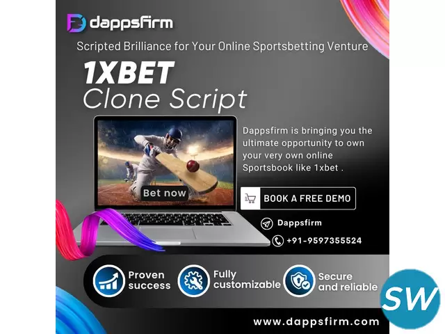 A 1xbet clone script is a pre-built software solution that replicates the functionality of the popular online betting platform 1xbet, allowing entrepreneurs to launch their own sports betting and casino website quickly. This clone script includes features such as live betting, casino games, and user-friendly interfaces, ensuring a competitive edge in the market. Dappsfirm offers a 1xbet clone script at minimal cost, providing an efficient and cost-effective way to enter the online gambling industry.
