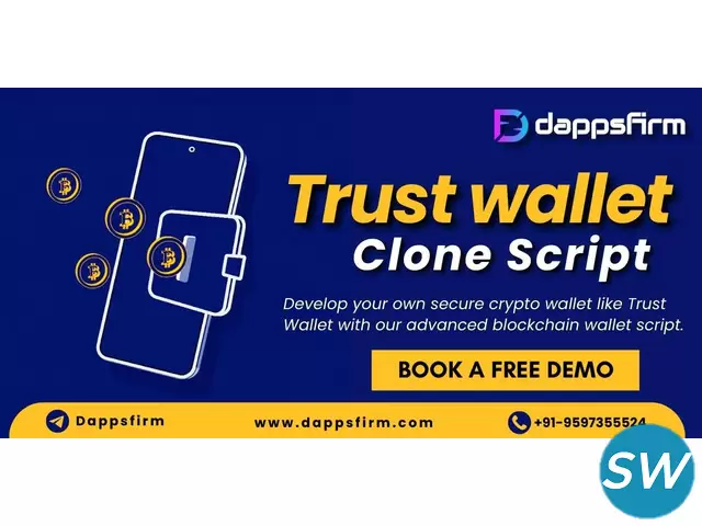Launch your own crypto wallet app with the Trust Wallet Clone Script! This ready-made solution replicates the core features of Trust Wallet, including multi-asset support, secure storage, and seamless transactions. Perfect for startups aiming to create a high-ROI crypto wallet quickly and cost-effectively. Customizable and scalable, it’s designed to meet your unique business needs. Dappsfirm offers top-tier Trust Wallet Clone Scripts at minimal cost and ensures a quick launch, making your crypto business dream a reality.