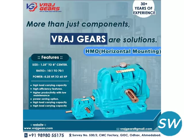 Vraj Gears, a premier gearbox manufacturer in Ahmedabad, specializes in crafting high-quality industrial gearboxes that meet the specific needs of various sectors. Whether you need a worm reduction gearbox for greater operational efficiency or require expert gearbox repair services to restore machinery to optimal performance, we have the expertise to deliver. Our gearboxes are built to last, ensuring minimal downtime and maximum productivity in your operations.