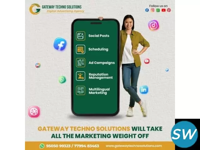 As a full-service digital marketing agency, Gateway Techno Solutions provides end-to-end solutions including logo design, website development, SEO, social media marketing, and graphic design. Our experts focus on creating strategies that deliver measurable growth and long-lasting brand impact. Whether you’re a startup or an established business, we tailor solutions to fit your needs. Get a free quote today and partner with us to achieve success in the digital world.