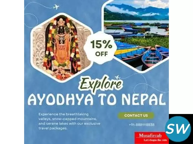 If you are planning to travel to Nepal from Ayodhya, Musafircab has brought you a special and affordable Ayodhya to Nepal Tour Package. Under this package, you can visit major religious and tourist destinations in Nepal, including Kathmandu, Pokhara, Lumbini, and Janakpur, all with full convenience and comfort. Musafircab provides you with reliable taxi service, excellent hotel booking, and an experienced guide – all at a very budget-friendly rate. We aim to make your trip memorable and stress-free.