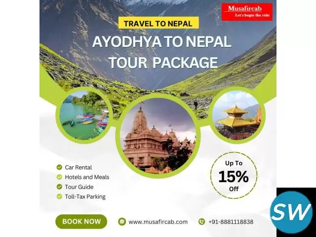 Experience the perfect blend of spirituality, culture, and nature with Musafircab’s Ayodhya to Nepal Tour Package. Starting from Ayodhya, the birthplace of Lord Ram, this tour takes you to Nepal’s most sacred and scenic destinations, including Kathmandu, Pokhara, Janakpur, Chitwan, and Lumbini. Explore famous temples l...