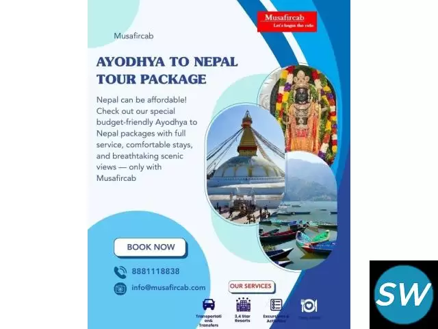 Looking for a quick and beautiful international getaway from Ayodhya? Experience the spiritual vibes, stunning mountain views, and vibrant culture of Nepal with Musafircab’s Ayodhya to Nepal Tour Package, crafted for complete comfort and convenience. Travel in safe and clean private AC cabs, enjoy smooth border crossings with our permit assistance, and experience customised itineraries tailored to match your budget and preferences. From budget stays to luxury hotels, from peaceful temple visits to scenic sightseeing tours, every detail is taken care of by our 24/7 support team.