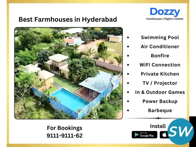 14999.00 ₹ Best Farmhouse Rentals in Hyderabad by Dozzy Farmhouse