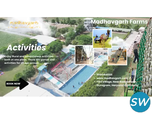 Looking for an exciting day picnic near Gurgaon? Madhavgarh Farms is your perfect escape! Dive into rural fun with tractor rides, mud baths, camel rides, and delicious traditional North Indian Food. Enjoy vibrant cultural activities, adventure zones, and games for all ages. Reconnect with nature, dance to folk tunes, and savor local delicacies. Book your day out now at Madhavgarh Farms – where fun meets tradition!