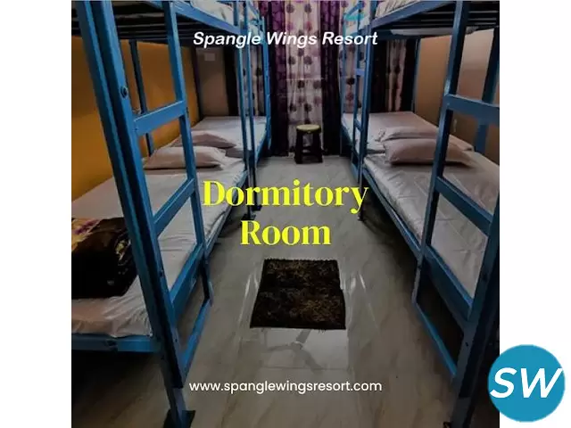 At Spangle Wings Resort, the dormitory rooms offer an unparalleled blend of comfort and camaraderie, designed specifically to cater to both leisure travelers and group outings. Each room is thoughtfully laid out with modern furnishings that emphasize functionality without sacrificing style, featuring sturdy bunks adorned with plush bedding and ample personal storage space for guests' belongings. Large windows invite natural light into the space while providing captivating views of the surrounding landscape, creating a serene atmosphere conducive to relaxation after a day of activities. The ambiance is further enhanced by vibrant decor reflecting the resort's commitment to fostering a lively communal spirit among guests from diverse backgrounds.