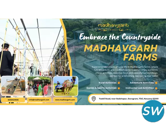 Experience rustic charm and adventure at MadhavGarh Farms, an ideal farm in Gurgaon for weekend outings, picnics, and celebrations. With tractor rides, pottery, adventure activities, and delicious local cuisine, it offers a blend of fun, culture, and relaxation for all age groups.
