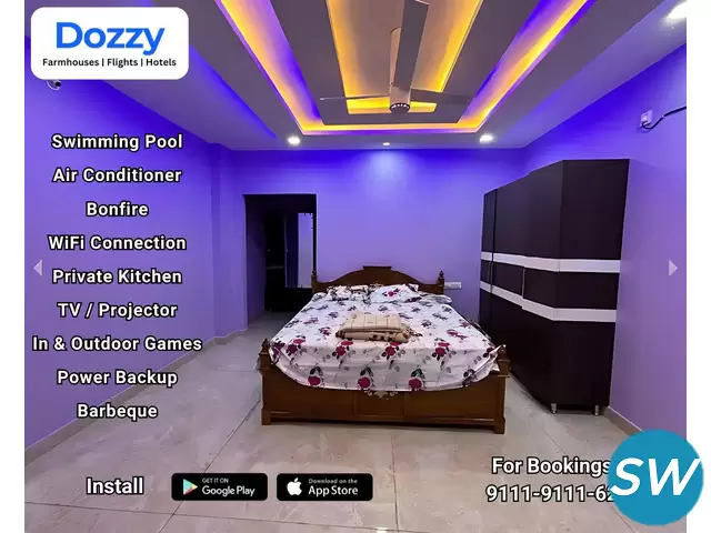 Farmhouse in Hyderabad with a pool is your ultimate party destination. Farmhouses are great for all kinds of celebrations, like birthday parties, bachelor parties, family get together or office events. They give you a mix of luxury, enjoyment and a peaceful place to relax. enjoy pool parties, play your favorite music and have a delicious BBQ with friends in a beautiful place. These farmhouses are in popular areas like moinabad, shamirpet, offering a fun atmosphere while keeping your gathering completely private. These farmhouses have everything you need, like comfortable furniture, air conditioning, and a well equipped kitchen. The rooms are warm and welcoming, and there are big, green outdoor spaces to relax in. You can have fun with a late night pool party, enjoy the peaceful surroundings, or organize a big event just the way you want. A farmhouse in Hyderabad with a pool is a great place for any event.