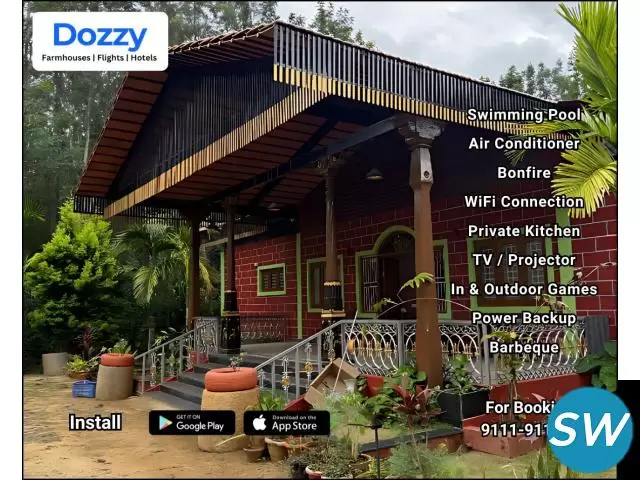 10000.00 ₹ Farmhouses near Bangalore by Dozzy Farmhouse