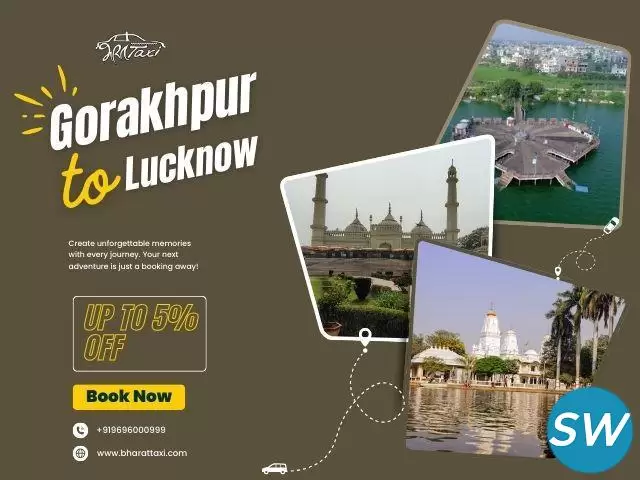 Book a Gorakhpur to Lucknow taxi with Bharat Taxi for a comfortable and reliable journey. Choose from a range of well-maintained cabs with professional drivers for a hassle-free ride. Whether for business or leisure, enjoy door-to-door service and 24/7 customer support. Call to book now.