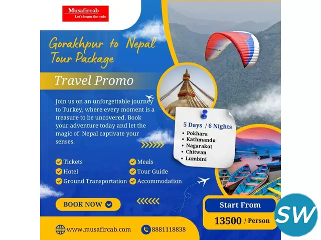 Make your dream trip a reality by choosing our Gorakhpur to Nepal Tour Package with Musafircab whether you’re interested in the bustling cities of Kathmandu Pokhara, or seeking the tranquillity of Nepal’s sacred sites. Embrace the spirit of adventure, and enjoy the beauty of Nepal’s landscapes with family and friends. This Package is for families, friends, or solo travellers seeking a unique experience, this tour offers the perfect balance of excitement and relaxation. Our Nepal Tour Package includes comfortable transportation, quality accommodation, delicious meals, and guided local sightseeing to ensure you have everything you need for an unforgettable journey. For any inquiries or bookings, feel free to call or WhatsApp us at. Our customer service executives are available 24/7 to assist you every step of the way.