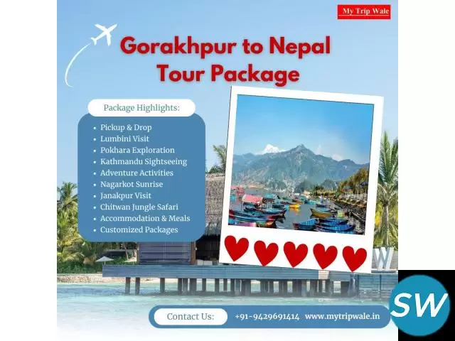 Embark on an unforgettable journey with My Trip Wale, offering the most affordable and well-planned Nepal Tour Package from Gorakhpur. Whether you're seeking spiritual bliss, breathtaking landscapes, or thrilling adventure, Nepal has it all. Our expertly curated Gorakhpur to Nepal Tour Package ensures a seamless and hassle-free experience, covering major destinations like Kathmandu, Pokhara, Lumbini, Janakpur, and Chitwan.