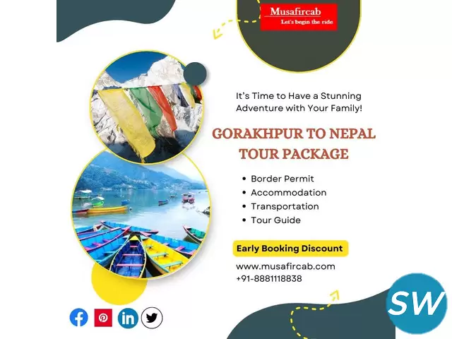 Begin an unforgettable journey to Nepal in 2025, where stunning landscapes and a rich cultural heritage await you. If you're planning an exciting getaway to this beautiful destination, Musafircab has the perfect solution! Our exclusive Gorakhpur to Nepal Tour Package is crafted to offer a seamless experience, ensuring comfort, convenience, and unforgettable memories. With customizable options, you'll enjoy comfortable accommodations, mouthwatering meals, private cab services, knowledgeable tour guides, and flexible itineraries tailored to your preferences, schedule, and budget.