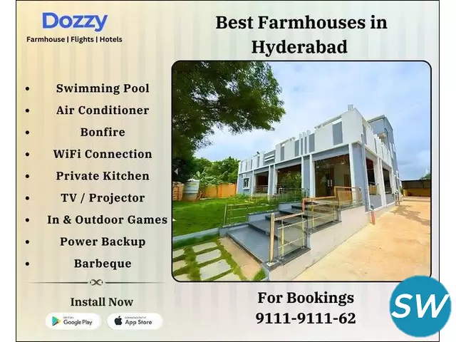Dozzy Holiday Homes provides an memorable stay in Hyderabad where you can enjoy every moment.Explore the range of vacation rentals at Dozzy that offer a blend of comfortable and modern amenities for your extended break or short family getaway.Choose from a variety of accommodations, at Dozzy Holiday Homes have options that fit what you like and how much you want to spend. From countryside farmhouses nestled amidst nature to lavish villas with pool facilities. Each residence has design elements, like living areas and fully equipped kitchens complete with high speed Wi Fi and entertainment setups for your enjoyment.Outdoor spaces are a feature of homes here. Expect to find children's play zones alongside barbecue setups and beautifully landscaped gardens ideal for hosting gatherings with loved ones.Reserve your spot now. Create special moments that last forever in a dozzy farmhouse.