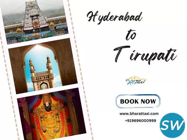 Book a Hyderabad to Tirupati cab with Bharat Taxi for a comfortable and affordable journey. Choose from a range of well-maintained cabs with experienced drivers for a safe ride. Enjoy easy booking, 24/7 support, and on-time service for your Tirupati trip.