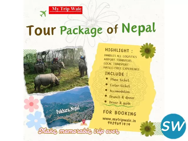 Embark on a memorable journey to Nepal Tour Package, Package of Nepal from India with My Trip Wale’s thoughtfully curated tour packages, designed to showcase the best of this Himalayan paradise. Nepal offers a unique blend of natural beauty and ancient traditions. My Trip Wale ensures that every tour is comfortable and hassle-free, with accommodations ranging from hotels to resorts. Our packages include customized itineraries and an expert tour guide in your budget If you have any queries or need further information about our Nepal tour package price, Visit our website at and contact number
