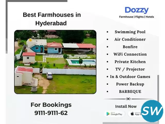 Discover ultimate luxury and privacy with a private farmhouse rental in Hyderabad through Dozzy, the perfect choice for relaxing escapes and unforgettable gatherings. Surrounded by beautiful landscapes, Dozzy farmhouses provide exclusive amenities such as private pools, expansive lawns, barbecue spots, and outdoor lounges. Each property blends comfort and style, featuring spacious bedrooms, fully-equipped kitchens, and elegant living areas. Whether for family gatherings, corporate retreats, or weekend getaways, a Dozzy farmhouse offers a serene setting to experience Hyderabad’s natural charm, just a short drive from the city. Step into a space that’s all yours, where you can enjoy premium amenities and create cherished memories. From cozy retreats to expansive venues for life’s special moments, a Dozzy farmhouse rental in Hyderabad delivers a truly tailored and private experience for any occasion.