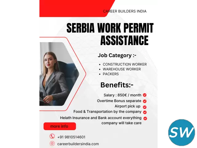 Hello Everyone Serbia work permits assistance available for Packers ,storekeeper Jobs profiles.