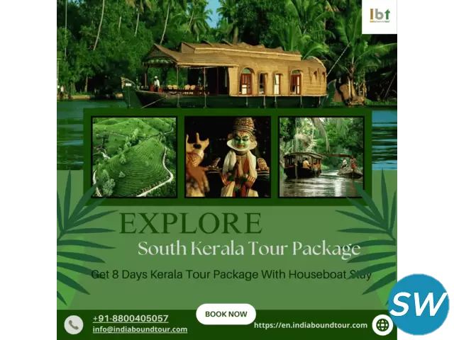 South Kerala tour packages offer an immersive experience into the heart of Kerala's natural beauty and cultural richness. Explore serene backwaters, tranquil beaches, and lush landscapes with tailored itineraries, including the 8 Days Kerala Tour Package with Houseboat Stay, covering popular destinations like Alleppey, Kovalam, and Kumarakom. Enjoy houseboat rides, Ayurvedic treatments, and authentic Kerala cuisine for a memorable getaway. Book now for an unforgettable journey through God’s Own Country.