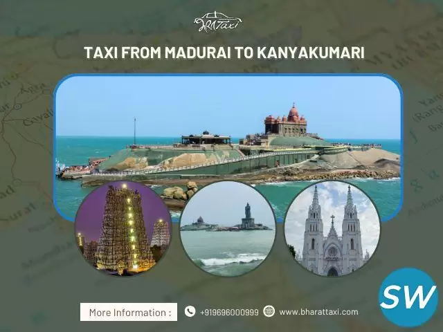 Book a comfortable taxi from Madurai to Kanyakumari with Bharat Taxi at affordable rates. Enjoy a smooth journey with well-maintained cabs and experienced drivers. The taxi fare typically starts from ₹3,800, depending on the cabs type and trip duration. 24/7 service available. Call us.